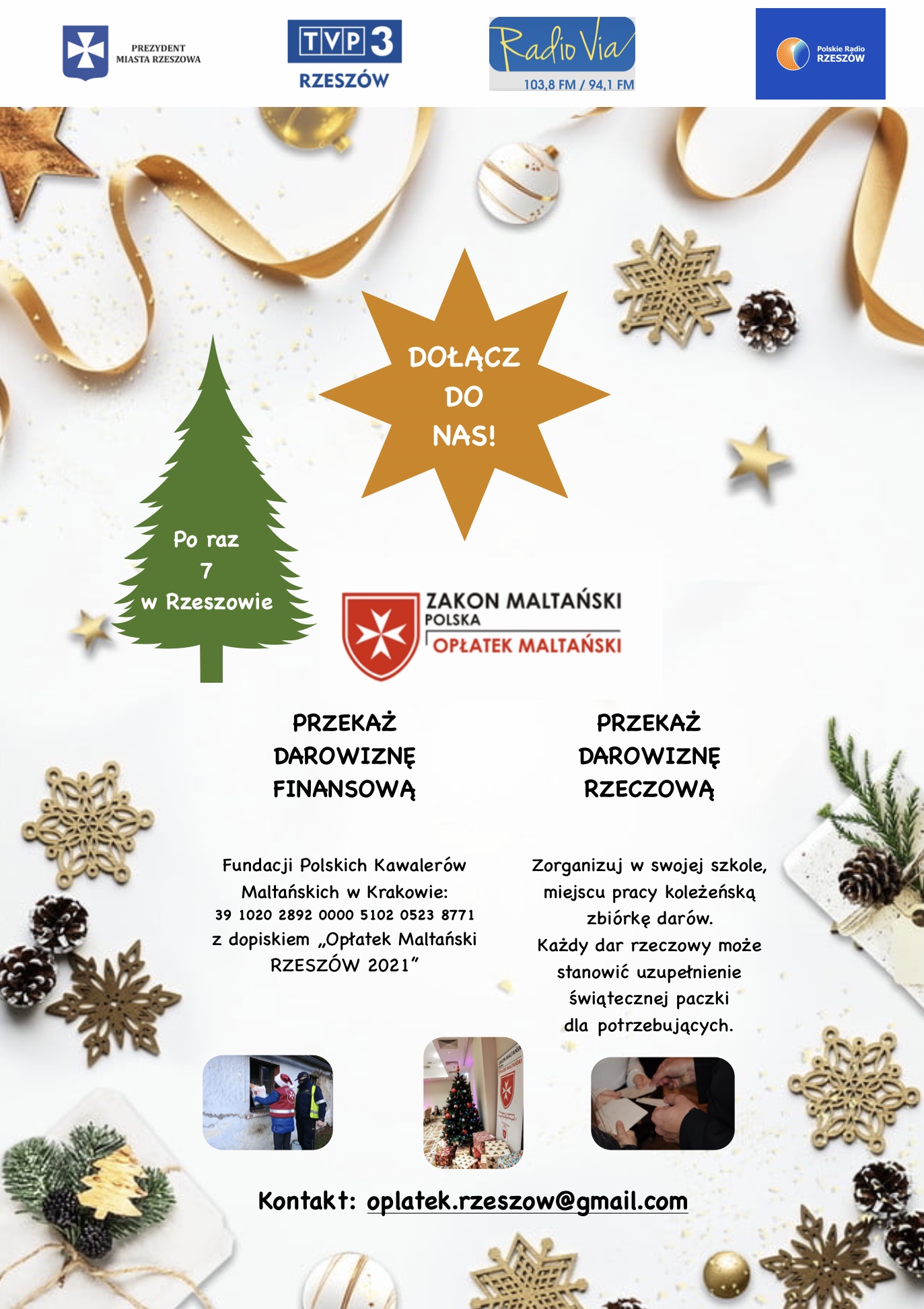 39 1020 2892 0000 5102 0523 8771 z dopiskiem „Opłatek Maltański RZESZÓW 2021”