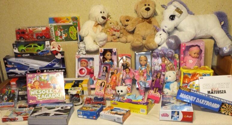 Dzięki Wam do każdej paczki dla dziecka trafią liczne artykuły szkolne, zabawki, puzzle, gry planszowe. Są też pluszaki, lalki, autka i piłki. Nie brakuje również ciepłych czapek, szalików i rękawiczek, czy też dresów. Również dla naszych maluszków są pampersy, chusteczki, kaszki. Każdy dziecko dostanie również małe co nieco na słodko. ;-)