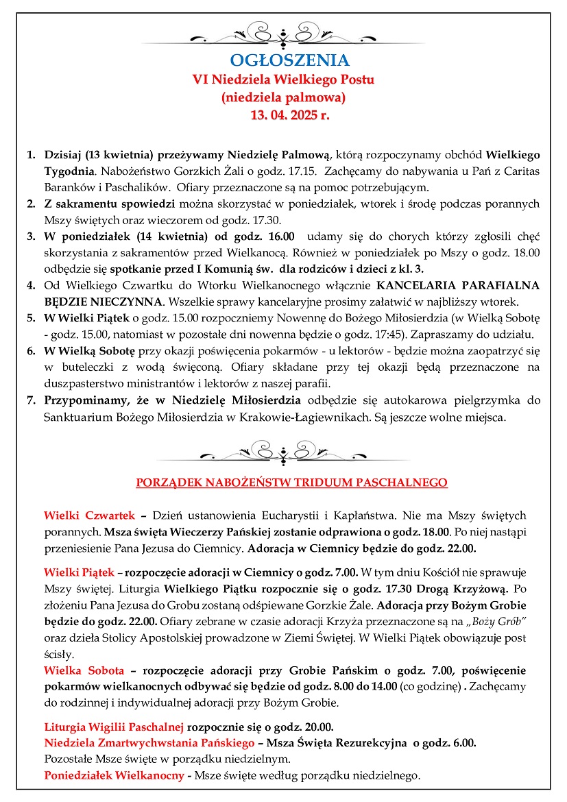 13 kwietnia - 6 Niedziela Wielkiego Postu |