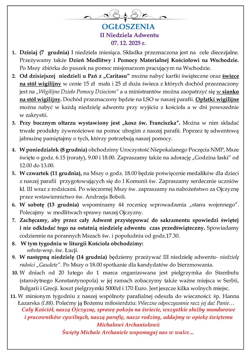 7 grudnia - 2 Niedziela Adwentu