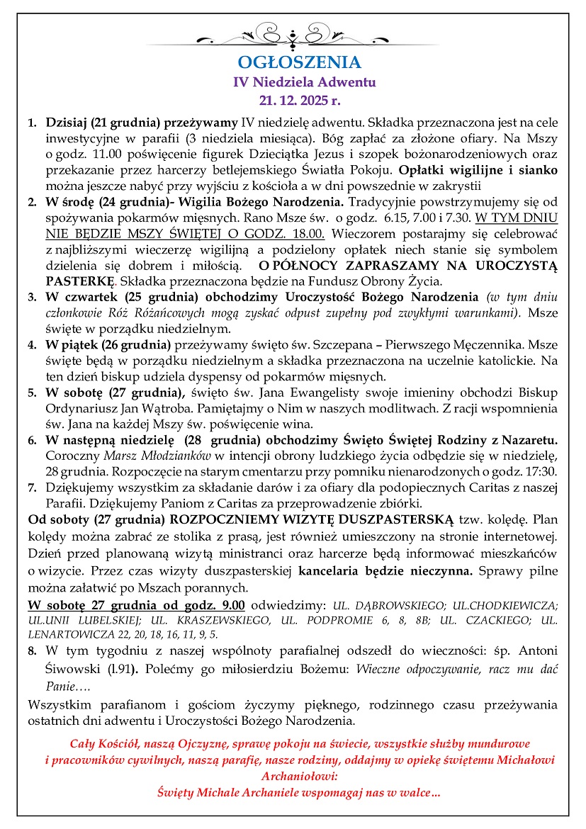 21 grudnia - 4 Niedziela Dawentu
